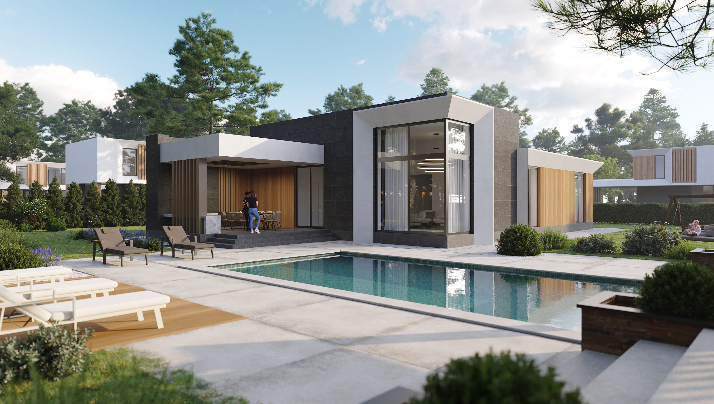 Местность, выбранная под проект, обладает сложным рельефом, который стал основной сложностью. Используя топографическую съёмку, команда разработала инновационные решения для интеграции каждого дома в окружающий ландшафт. Профессиональные архитекторы и инженеры продумали каждый нюанс, чтобы обеспечить безопасность и удобство будущим жителям.