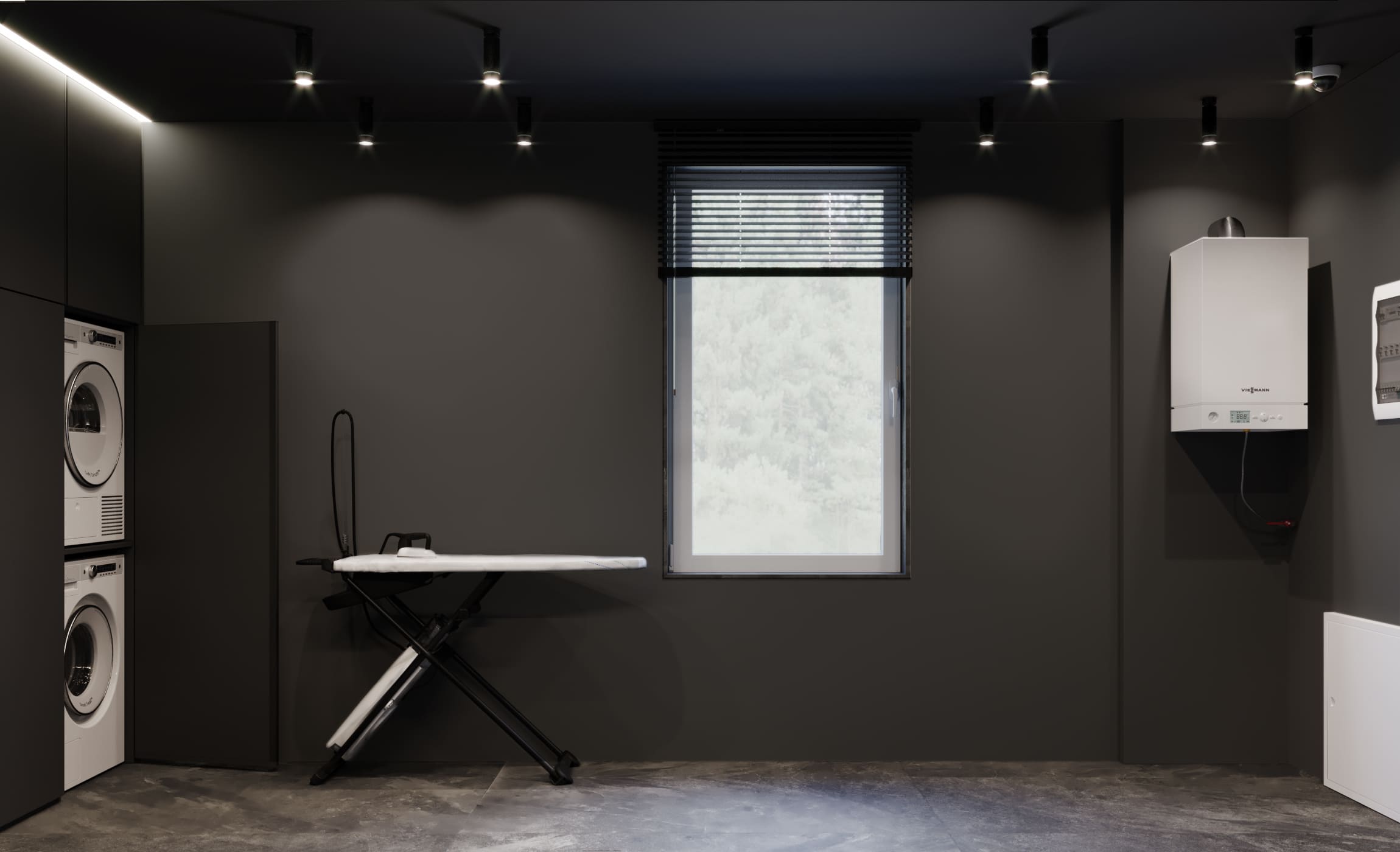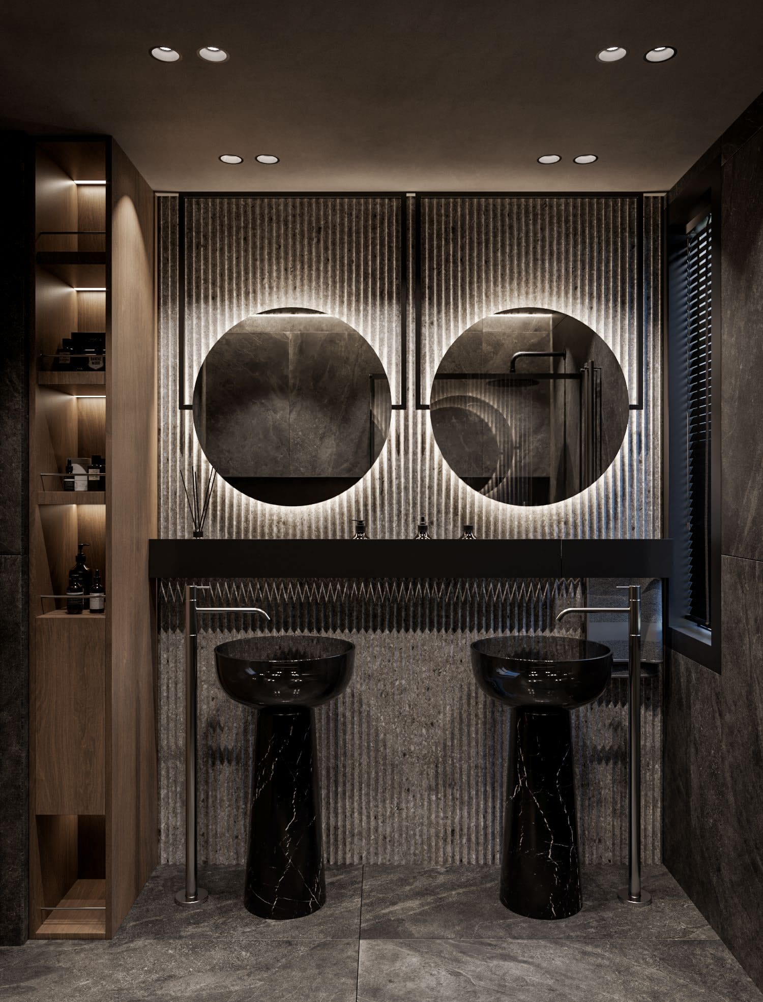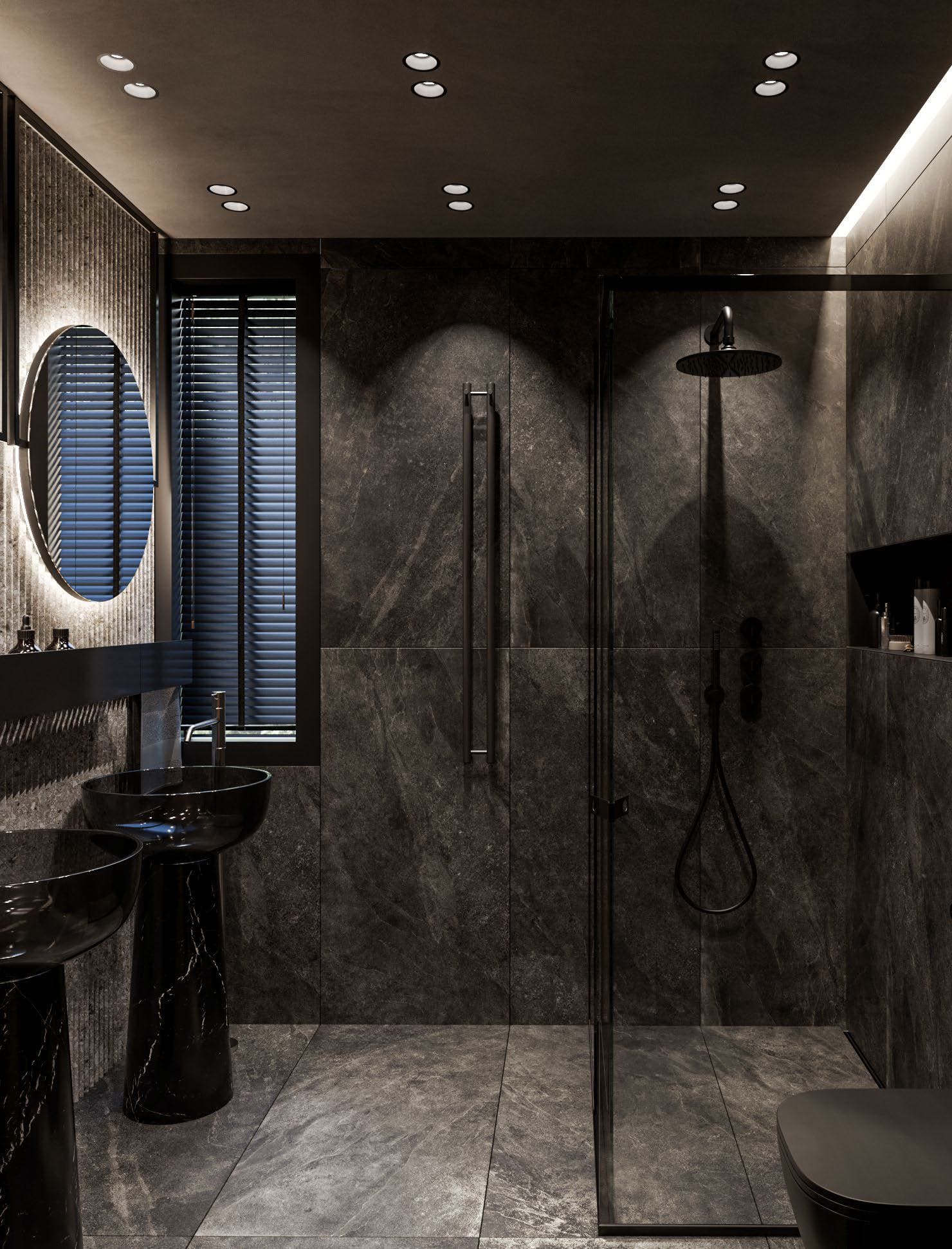 Контрастный интерьер со стеной-водопадом